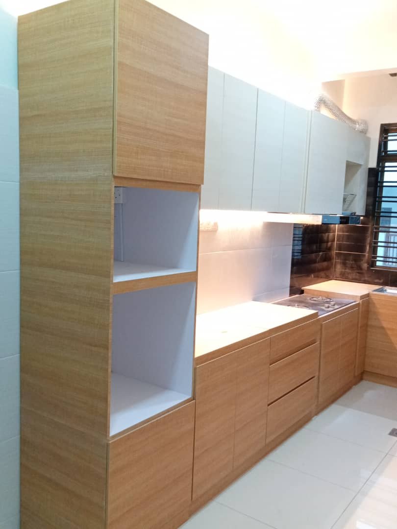 60cm Dish Rack Wall Cabinet made with plywood wrapped with laminate.